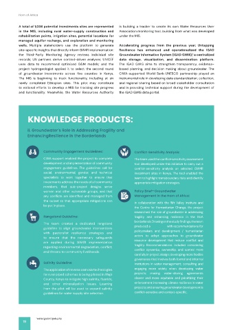 of groundwater investments across five counties in Kenya. CIWA-supported World Bank-UNESCO partnership played an