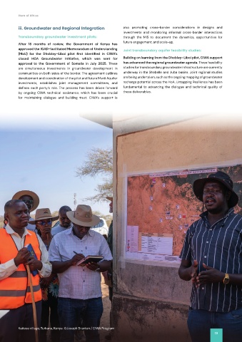 approval to the Government of Somalia in July 2025. These has advanced the regional groundwater agenda. Three feasibility