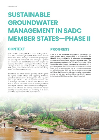 S o u t h e r n A f r i c a c o n t i n u e d t o f a c e s e v e r e c h a l l e n g e s i n t h e Phase II of the Sustainable Groundwater Management for