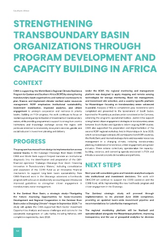 management. RCRP emphasizes institutional sustainability, for Mozambique—focusing on transboundary areas—advanced