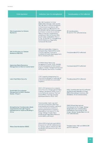 States/RBOs (training); Zanzibar Zimbabwe. All are transboundary.