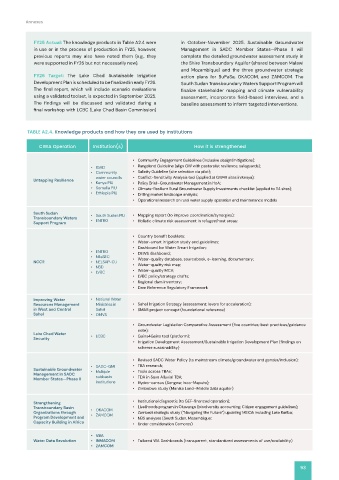 FY25 Actual: The knowledge products in Table A2.4 were in October-November 2025. Sustainable Groundwater