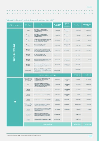 Annexes Tableau A4.5 : Données financières des projets financés par CIWA (USD) 56 31/01/2026 31/05/2025 31/05/2025 30/11/2025 01/12/2025 31/05/2025 56 Les projets en réserve validés par le Comité consultatif sont indiqués en bleu. 110