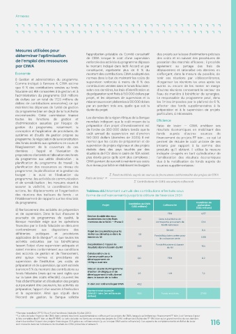 sont mesurés dans les indicateurs de résultats de CIWA présentés à l’annexe 2. 116