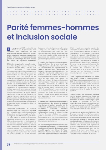en matière de parité femmes-hommes et CIWA, qui s’inscrit dans la même démarche difficultés rencontrées par les femmes dans