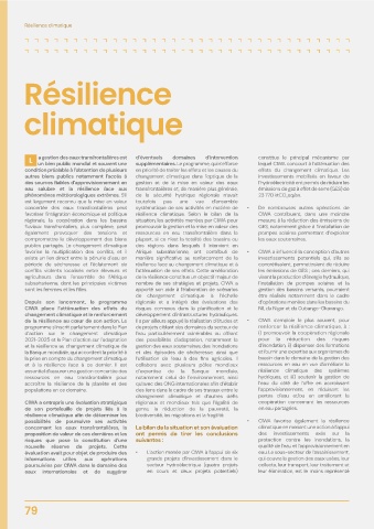 de la résilience au cœur de son action. Le Il a par ailleurs appuyé la réalisation d’études et • CIWA s’emploie le plus souvent, pour