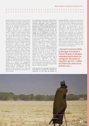 planification des investissements. Le système harmoniser les politiques et les pratiques situation de FCV ; CIWA