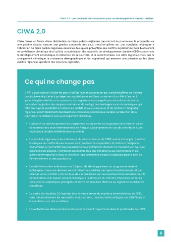 Les résultats régionaux et les indicateurs de vision connexes de CIWA restent inchangés : i) réduire