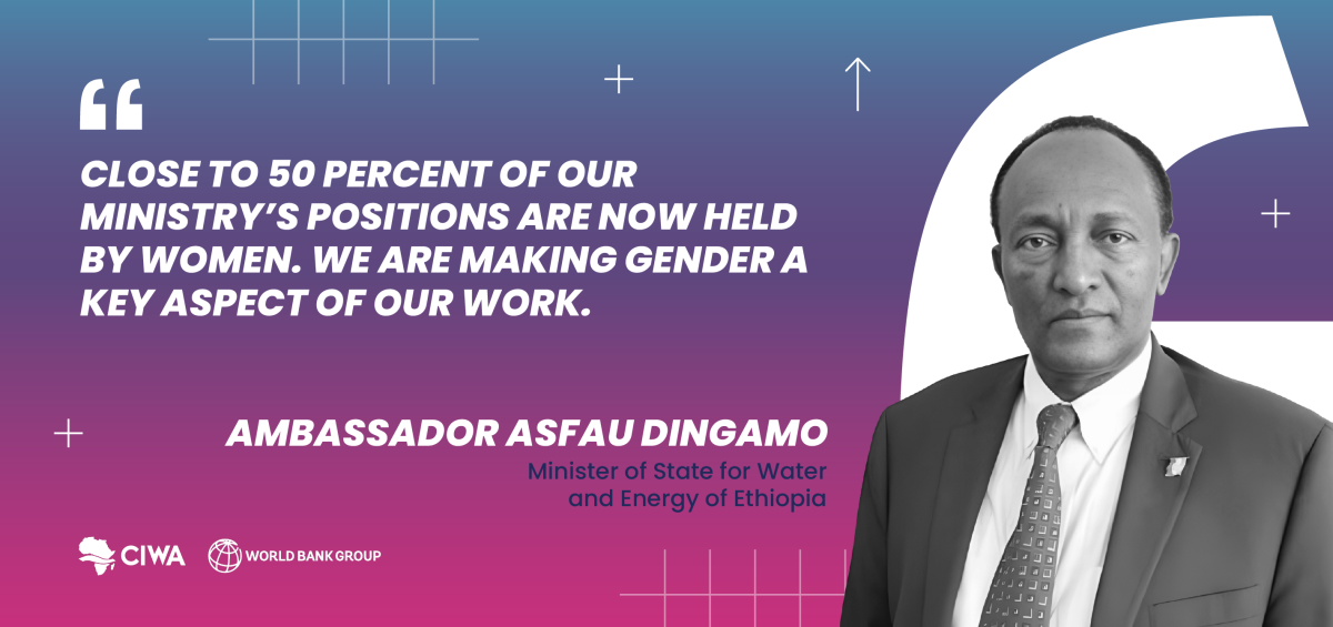 Cette année, ces deux thèmes ont convergé avec force lors d'un événement qui s'est déroulé le 5 mars 2026, lorsque la Coopération sur les eaux internationales en Afrique (CIWA) et le ministère éthiopien de l'eau et de l'énergie ont coorganisé un webinaire intitulé “Women Leaders in Transboundary Water Governance : L'expérience de l'Éthiopie”. L'événement, organisé par l'initiative Male Champions for Women's Empowerment (MCWE) de CIWA, a rassemblé 76 participants de toute l'Afrique - fonctionnaires, diplomates de l'eau, leaders de la société civile, chercheurs et donateurs - afin d'explorer la manière dont l'Éthiopie intègre une approche transformatrice du genre dans la gestion des eaux transfrontalières.